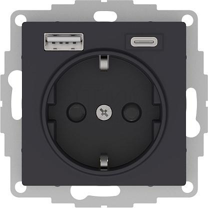 Розетка одинарная скрытая 16А 220В IP20 c 2 USB A+С карбон ATLASDESIGN