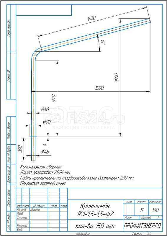 Кронштейн однорожковый "Стандарт" под UMECON 1.К1-1.5-1.5-ф2 D48мм гор. цинк