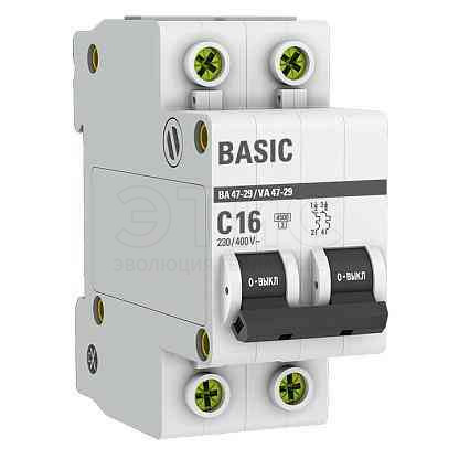 Выключатель автоматический 2П 16А С 4,5кА ВА47-29 Basic