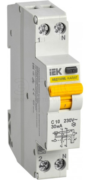 Выключатель автоматический дифференциальный AВДТ32МL 1П С 10А 30мА AС 6кА КАРАТ